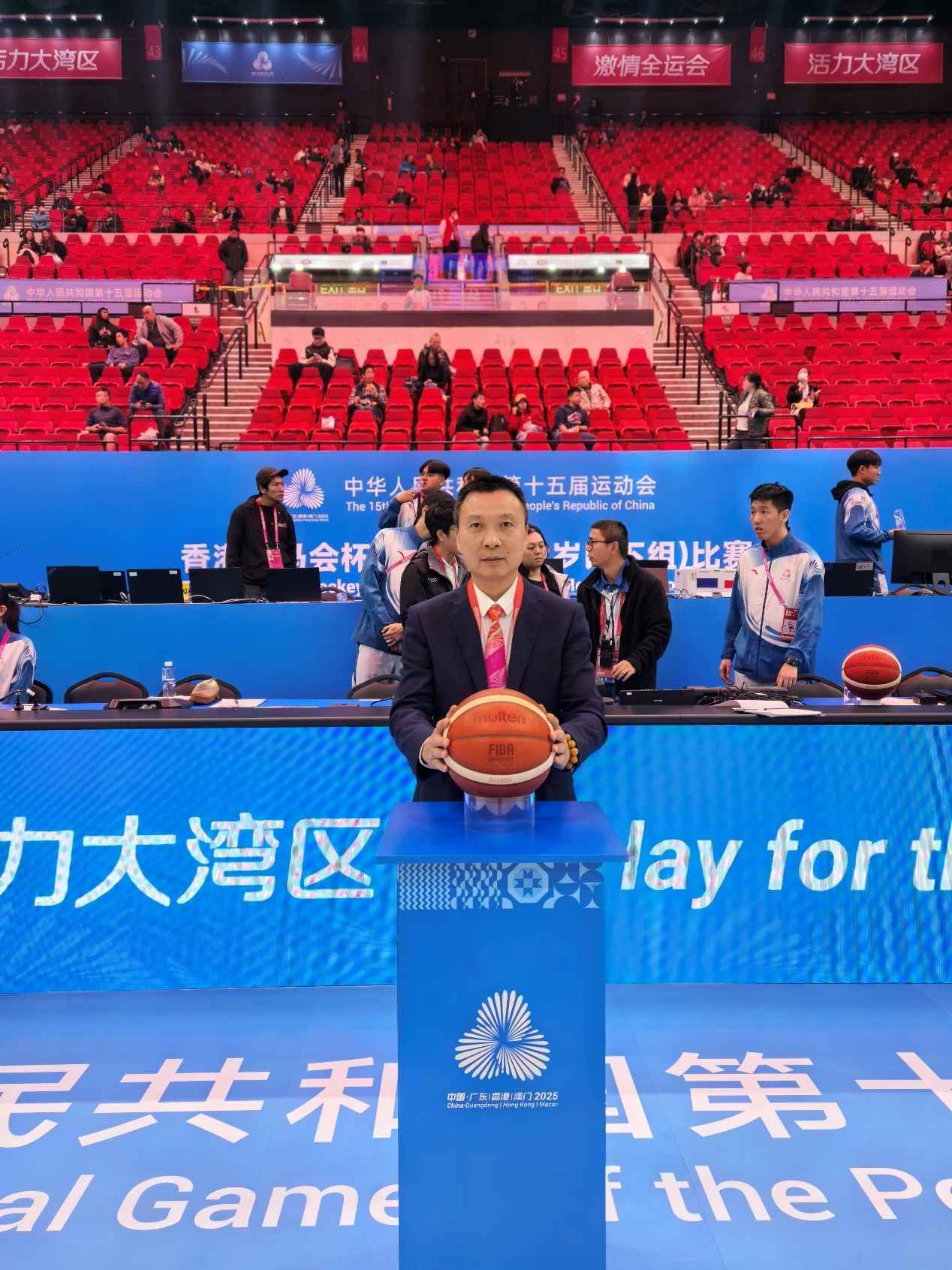 taptap点点送彩金新闻网讯 近日,第十五届全国运动会篮球项目(男子22岁以下组)赛事在粤港澳大湾区圆满落幕。体育学院副教授陈庆胜担任该项目赛事的技术代表,以专业的执裁素养与丰富的赛事经验,完成了全运会篮球项目的执裁工作,展现了我校体育教师的专业实力与职业风采。